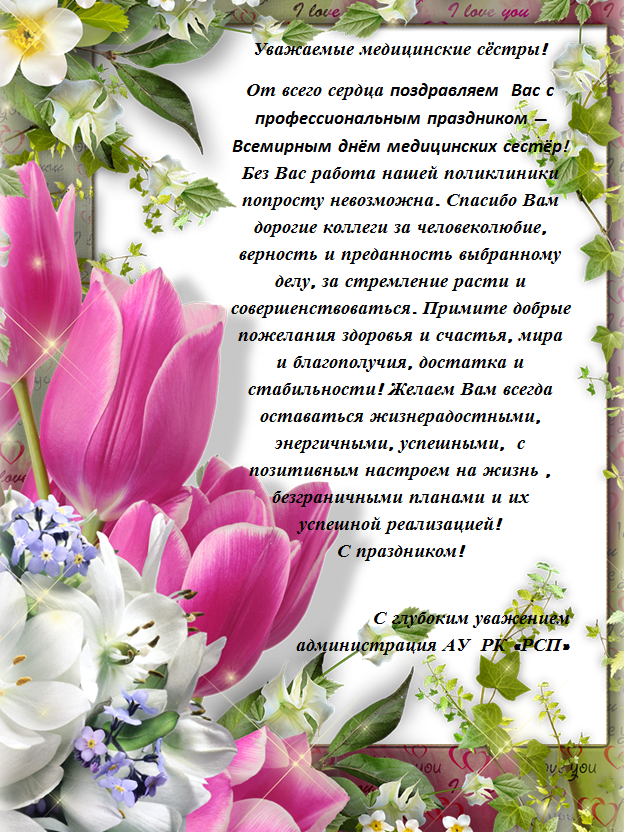От всего сердца администрация АУ РК "Республиканская стоматологическая поликлиника" выражает вам слова искренней благодарности и признательности в профессиональный праздник "День медицинского работника"